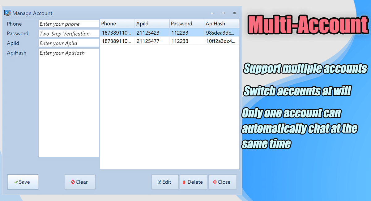 Yes, our system supports saving multiple Telegram accounts. However, please note that only one account can be active at a time.