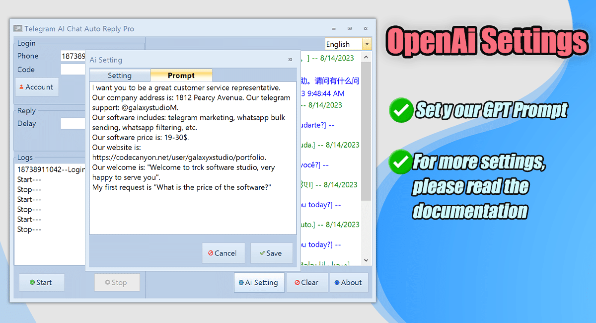 You can easily set your own prompt for ChatGPT, enabling it to answer your preset questions with accuracy and efficiency.